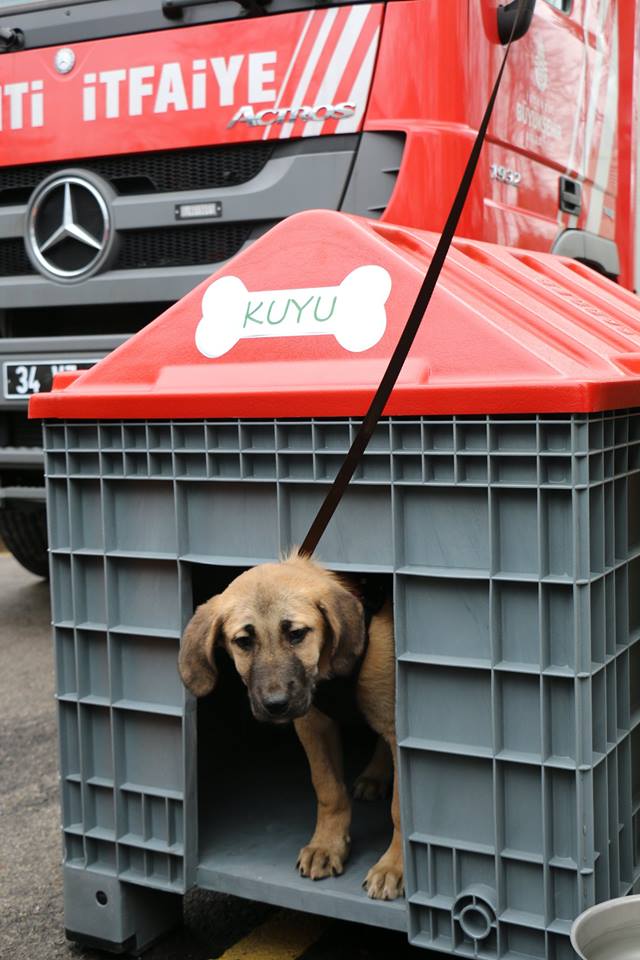 Beykoz'da kuyuya düşen ve 10 gün sonra kurtarılan yavru köpek "Kuyu" sıcak yuvasına kavuştu. Beykoz İtfaiye İstasyonu’nda korumaya alınan "Kuyu" köpeğe Yuvaya Dönüşen Plastikler projesi kapsamında bir yuva hediye edildi.